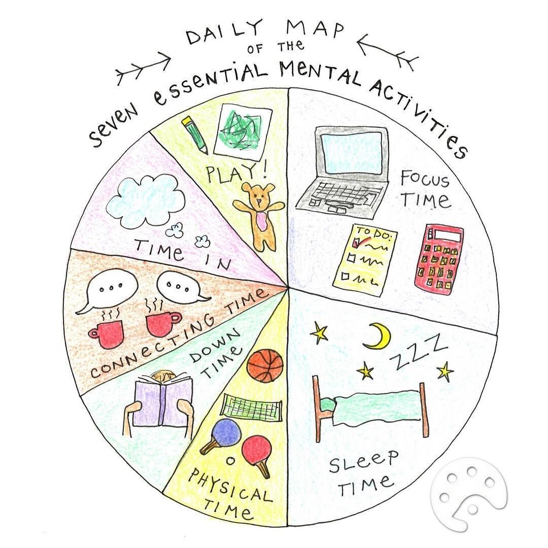 There’s no specific recipe for a healthy mind, as each individual is different, and our needs change over time too. The point is to become aware of the full spectrum of essential mental activities, and just like with essential nutrients, make sure that at least every day we are nudging the right ingredients into our mental diet, even for just a little time. Just like you wouldn’t eat only pizza every day for days on end, we shouldn’t just live on focus time and little sleep. Mental wellness is all about giving your brain lots of opportunities to develop in different ways.