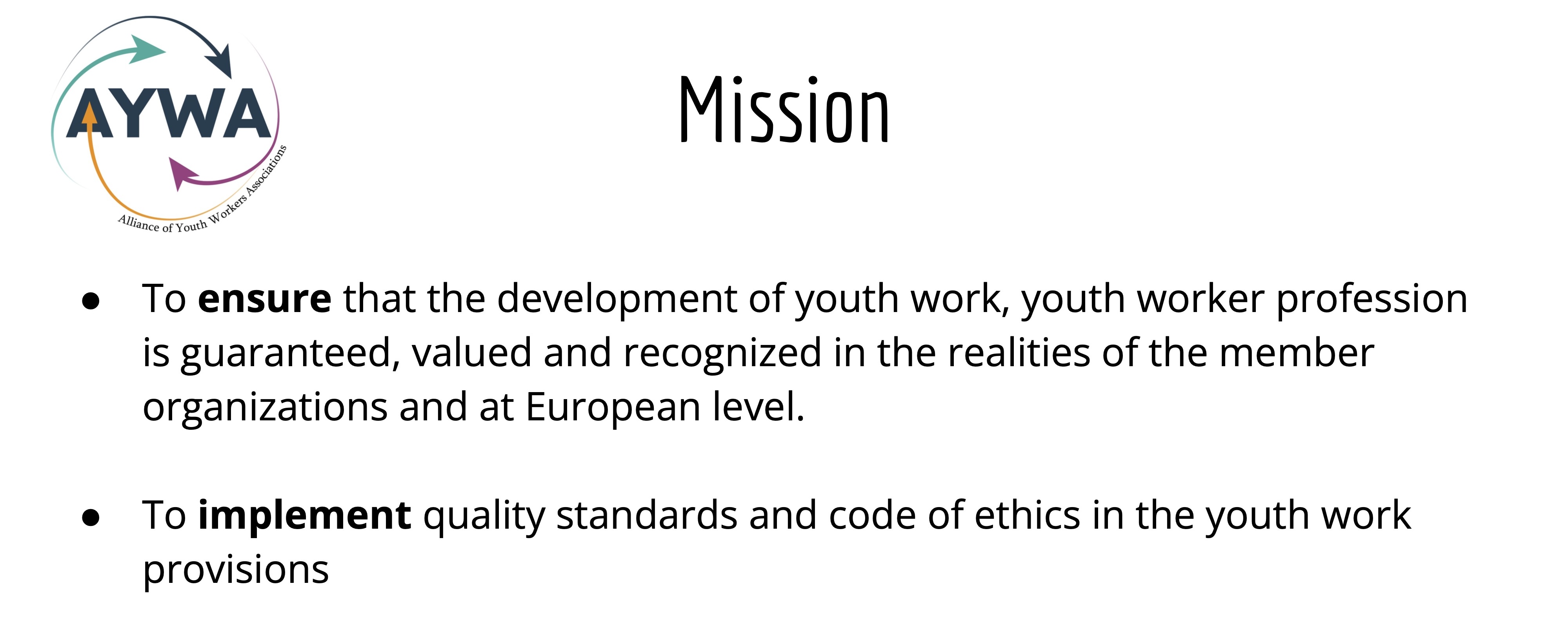 Several national youth work associations established the Alliance of Youth Workers Associations (AYWA).